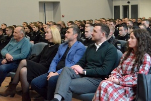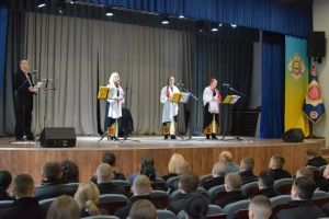 Перед початком вистави перший заступник голови Кіровоградської обласної ради Юрій Семенюк, директорка департаменту культури та туризму ОВА Уляна Соколенко, заслужений працівник культури України Микола Кравченко та очільниця обласної організації НСПУ Надія Гармазій розповіли курсантам ДонДУВС про символи літературно-театрального проєкту «Великий льох», історичні аспекти містерії Кобзаря та її переплетіння з подіями сучасної російсько-української війни.