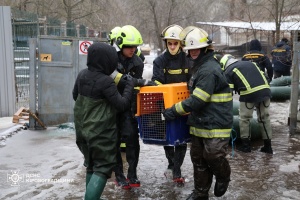 Протягом дня також надавалася допомога громадській організації захисту тварин «БІМ». Під час проведення робіт врятовано 15 собак, а також перевезено із затопленої території майно притулку та корми для тварин.