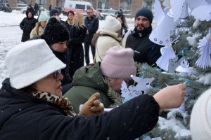 Завершальним етапом стала участь присутніх у всеукраїнській тихій акції «Ангели пам’яті-2026». Учасники розвісили на деревах паперових ангелів – символи душ загиблих борців за свободу та нагадування про їхню жертовність.