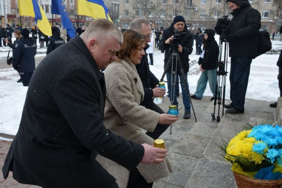 Учасники акції поставили запалені лампади до меморіальної дошки Героя України Віктора Чміленка. На площі Героїв Майдану присутні вшанували пам’ять полеглих загальнонаціональною хвилиною мовчання. Пролунав Державний Гімн України. Керівники області, міста та силових структур поставили лампади до пам’ятного знаку Героям Небесної Сотні.