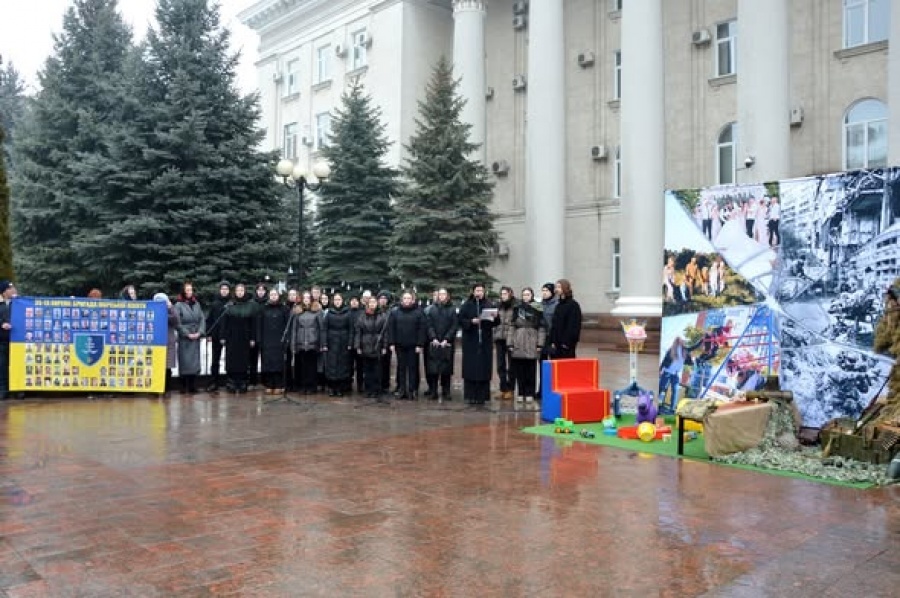 На площі перед міською радою зібралися кропивничани з державними прапорами України, серед них — рідні загиблих військових і зниклих безвісти захисників.