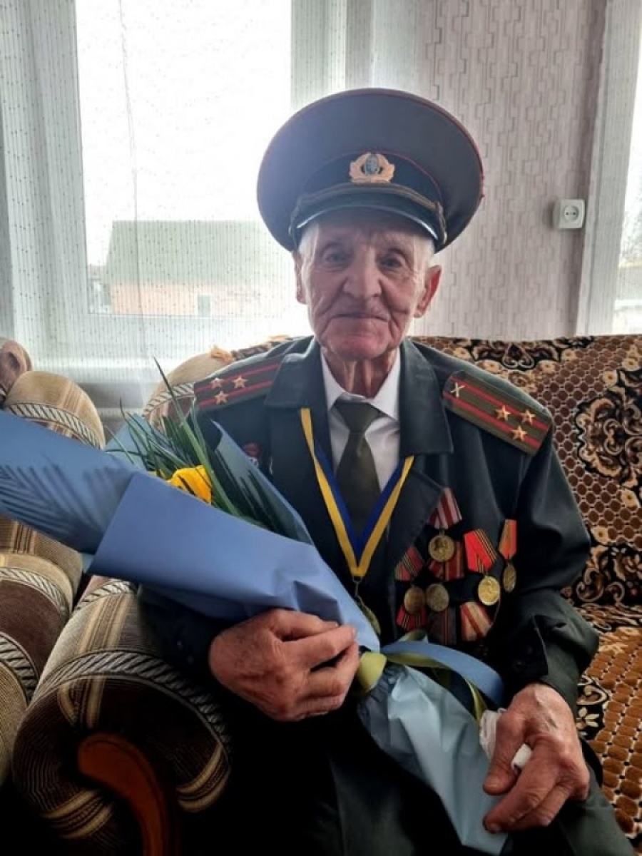 Микола Іванович зустрів гостей, як і годиться ювіляру – при повному параді. Ряди нагород на військовому кітелі свідчать про нелегкий життєвий шлях, який йому довелося пройти. Народився 03 березня 1926 року у Кропивницькому, пережив Голодомор, у 1944 його призвали в армію, пройшов війну, а опісля закінчив військову академію і ще сім років продовжував військову службу у Німеччині. Пізніше повернувся додому у рідне місто, де все трудове життя працював на одному підприємстві – заводі «Ельворті», який на той час мав назву «Червона зірка».