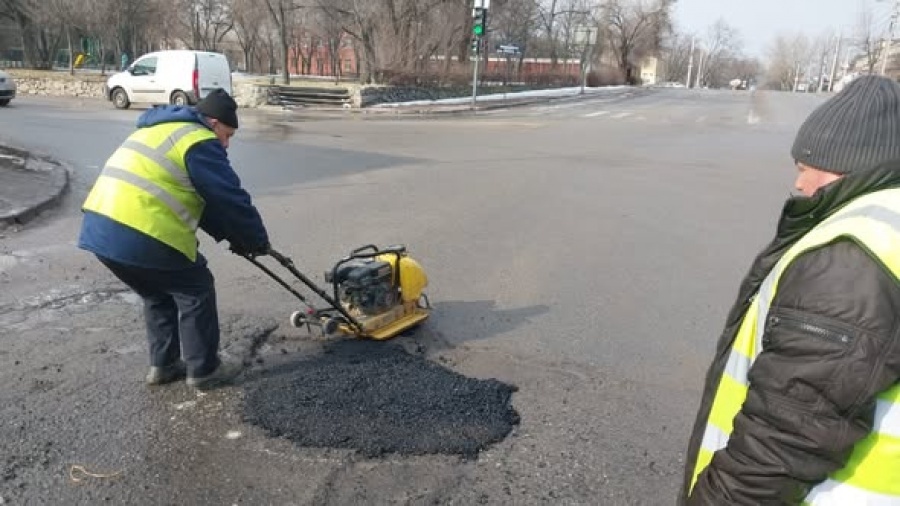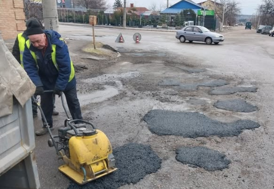 Працюємо методом холодного асфальтування, оскільки температурні показники ще не дозволяють використовувати гарячі суміші.