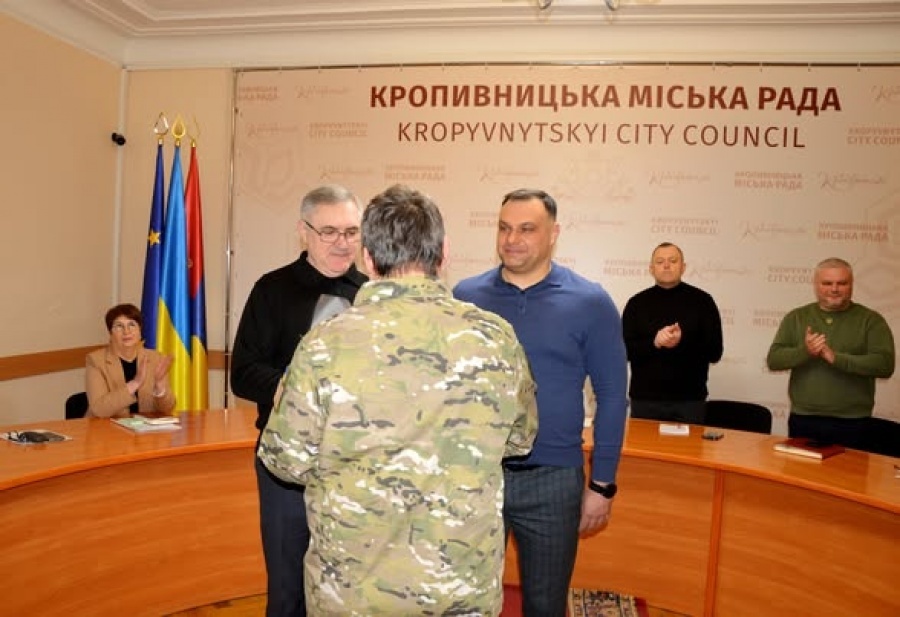 За значний внесок у справу захисту державного суверенітету та територіальної цілісності України, сумлінну працю та високий професіоналізм Олександр Мосін і Олег Колюка вручили відзнаки Кропивницької міської ради та виконавчого комітету «Полум’яне серце» військовослужбовицям бойових підрозділів ЗСУ Валентині Васалатій та Яніні Вітковській.