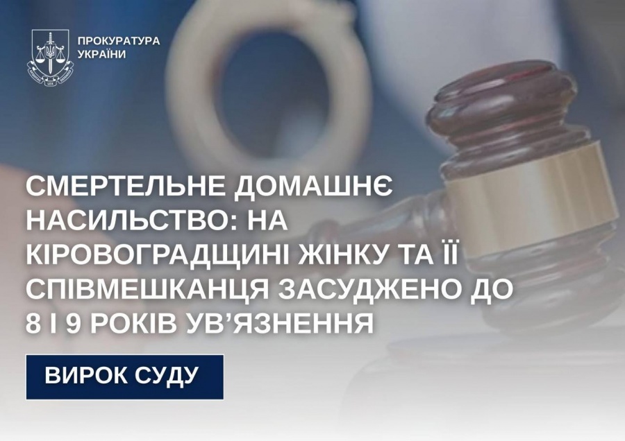 Прокурори довели, що ввечері 5 листопада 2024 року в одному з домоволодінь Кропивницького району під час конфлікту 39-річна жінка разом зі своїм 29-річним співмешканцем жорстоко побили знайомого чоловіка. Вони наносили потерпілому численні удари руками та ногами по голові й тілу. Подія сталася у помешканні, де проживали обвинувачені, та має ознаки домашнього насильства.