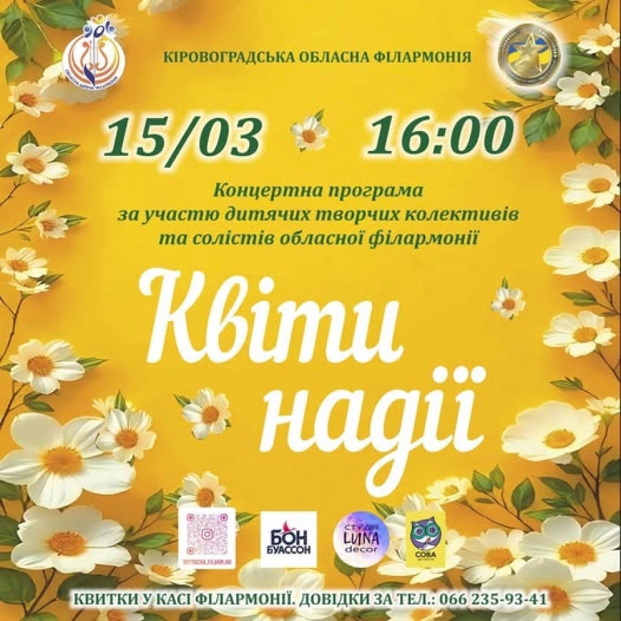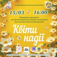 Обласна дитяча філармонія запрошує юних кропивничан та їхніх батьків на особливий весняний концерт «Квіти надії», де артисти подарують глядачам світлий настрій, щирість і натхнення.