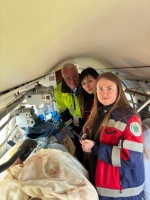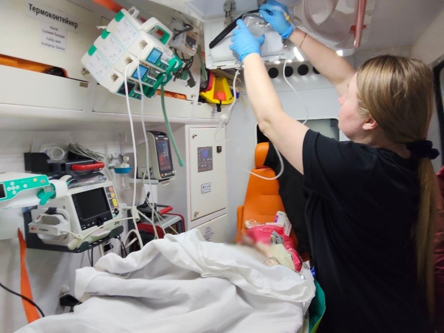 Пацієнта транспортувала бригада у складі лікарки медицини невідкладних станів Юлії Коби та парамедикині Інни Зарєвої за підтримки екстрених медичних техніків Євгена Криворога і Віталія Шевченка. Під час багатогодинного транспортування медики постійно контролювали стан пацієнта та підтримували життєво важливі функції організму. Зокрема, вони забезпечували складну анальгоседацію, проводили інфузійну терапію та штучну вентиляцію легень.