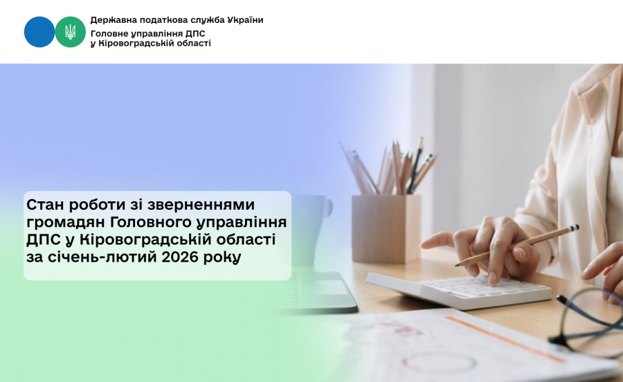 Протягом січня-лютого 2026 року до ГУ ДПС у Кіровоградській області надійшло 68 письмових звернень громадян (заяв), що на 25 звернень більше, ніж за відповідний період 2025 року (43), повідомляє Головне управління ДПС у Кіровоградській області.