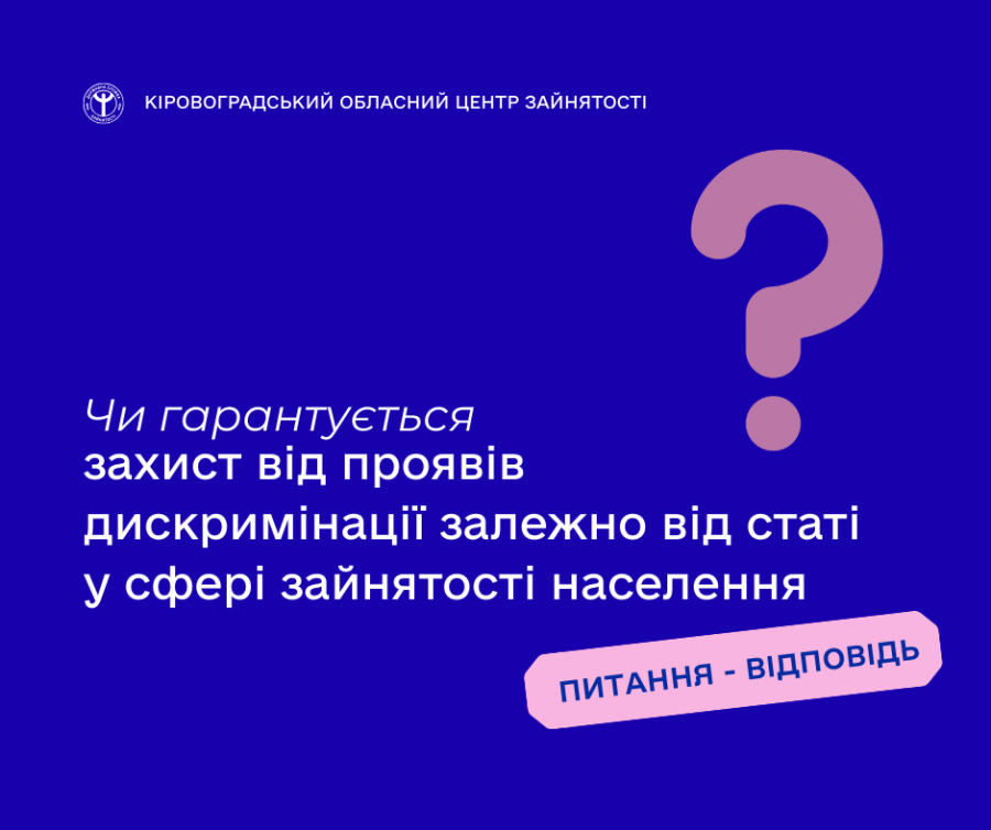 Статтею 11 Закону України “Про зайнятість населення” визначено, що держава гарантує особі право на захист від будь-яких проявів дискримінації у сфері зайнятості населення, у тому числі, залежно від статі.