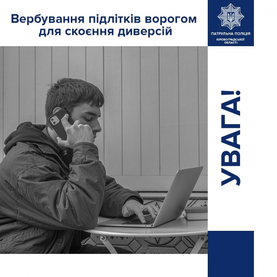 Якщо отримуєте дивні пропозиції, зокрема скоєння диверсій за гроші, або помічаєте щось підозріле, у жодному разі не погоджуйтеся на співпрацю та негайно скажіть батькам чи вчителям.