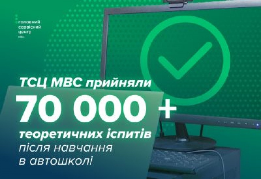 З початку 2026 року кандидати у водії склали понад 70 тисяч теоретичних іспитів після навчання в автошколі. із них 15180 – з успішним результатом із першої спроби, а це 21,5%.