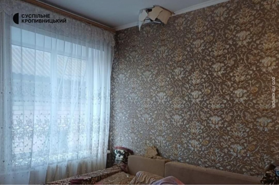 "Двигун дрона розлетівся в різні боки та пробив дах будинку й стелю. У будинку у цей час був чоловік — він лежав на дивані. Коли почув шум на дворі, він встав. На щастя, не травмувався".