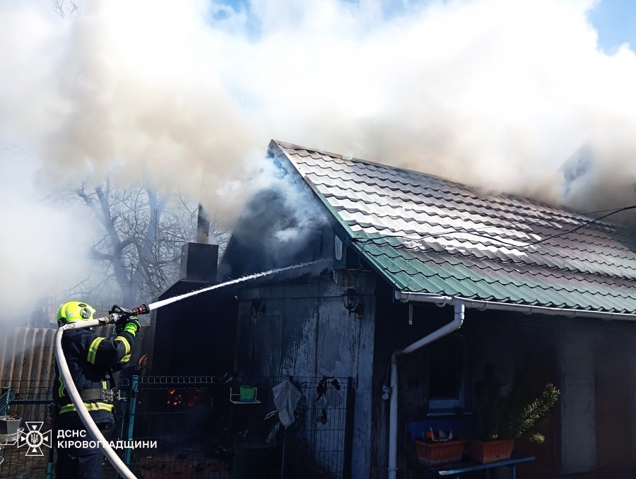 О 13:30 надійшло повідомлення про пожежу на вул. Водогінній в обласному центрі. Горіли 20 м² покрівлі та перекриття господарчої споруди на території приватного домоволодіння. О 14:44 кропивницькі рятувальники ліквідували займання.