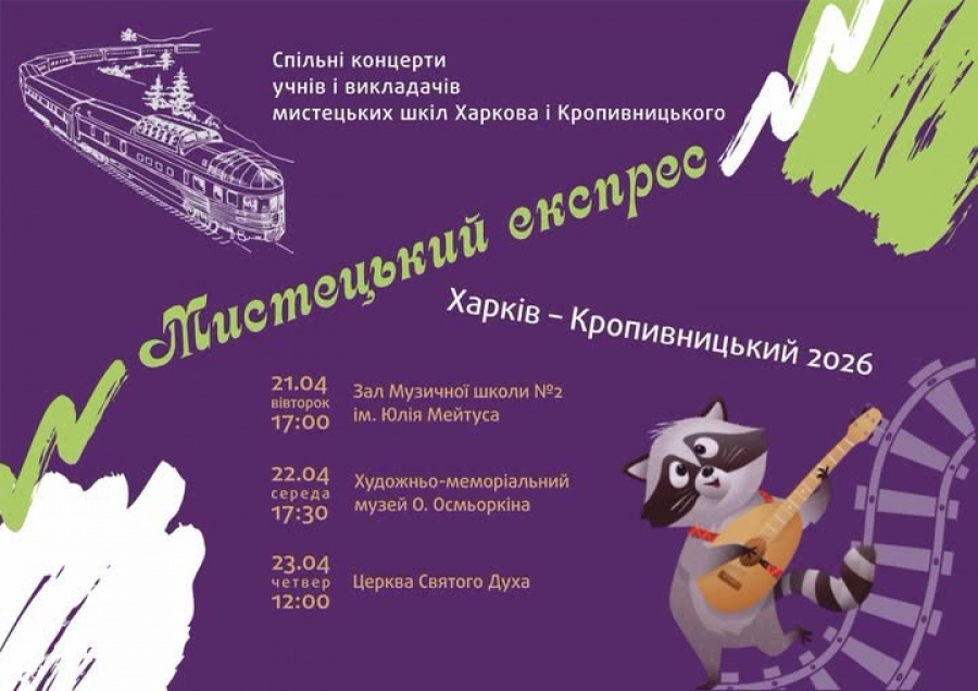 «Мистецький експрес «Харків – Кропивницький 2026» стартує вже у вівторок, 21 квітня.