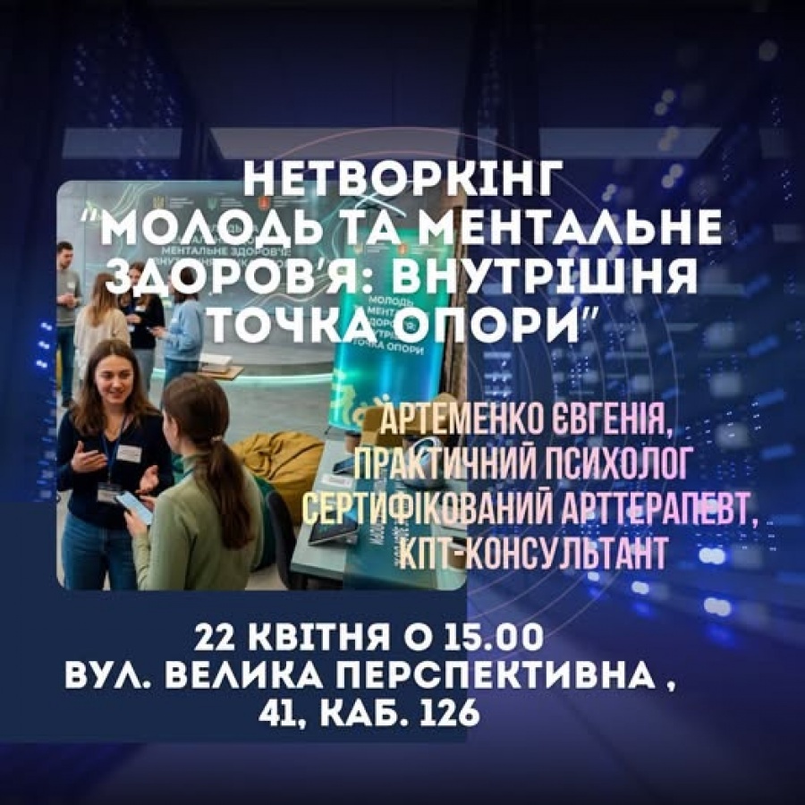 З метою підтримки ментального здоров’я молоді та створення простору для відкритого діалогу відбудеться нетворкінг «Молодь та ментальне здоров’я: внутрішня точка опори».