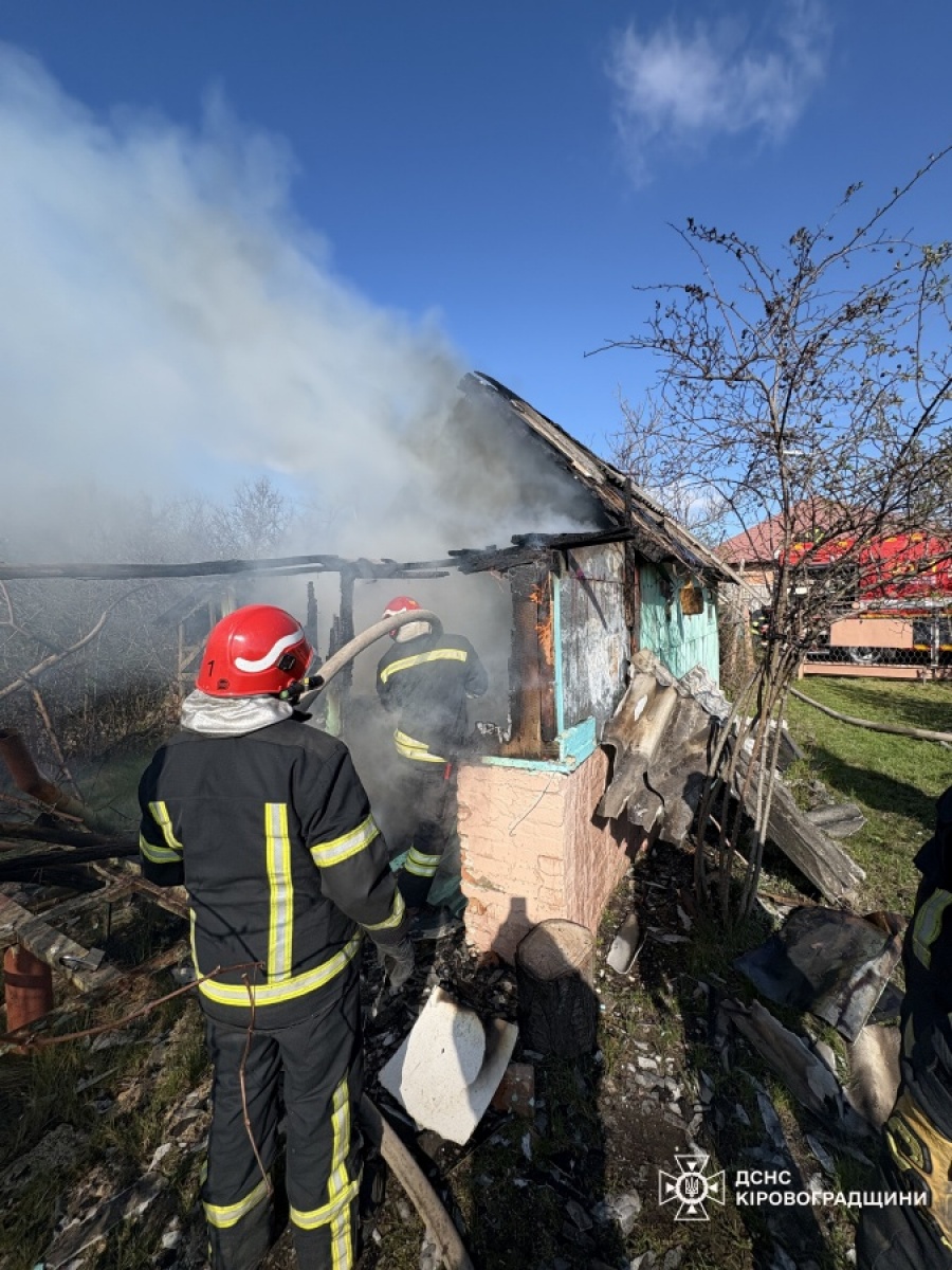 О 12:20 Служба порятунку отримала повідомлення про займання на території приватного домоволодіння у м. Кропивницький. Вогонь охопив 10 м² господарчої споруди, 1,5 м³ дров та 5 м² сміття. Бійці місцевої пожежно-рятувальної частини о 13:14 ліквідували пожежу.