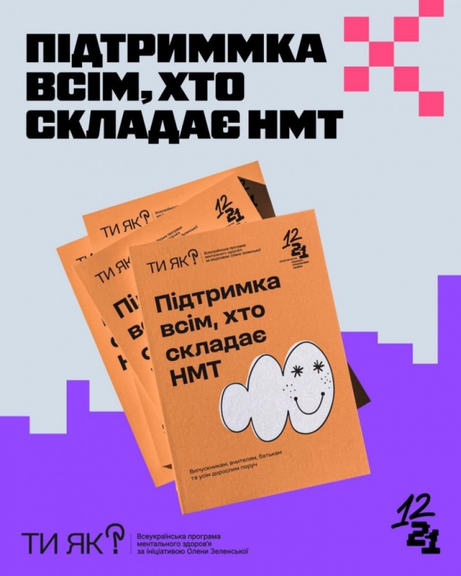 Це сигнал, який неможливо ігнорувати. У відповідь на запит молоді виникла ідея посібника «Підтримка всім, хто складає НМТ». Його створили в межах проєкту Olena Zelenska Foundation / Фундація Олени Зеленської з розвитку мережі молодіжних просторів «12–21» спільно зі Всеукраїнською програмою ментального здоров’я «Ти як?» за експертної участі психологині Світлана Ройз.