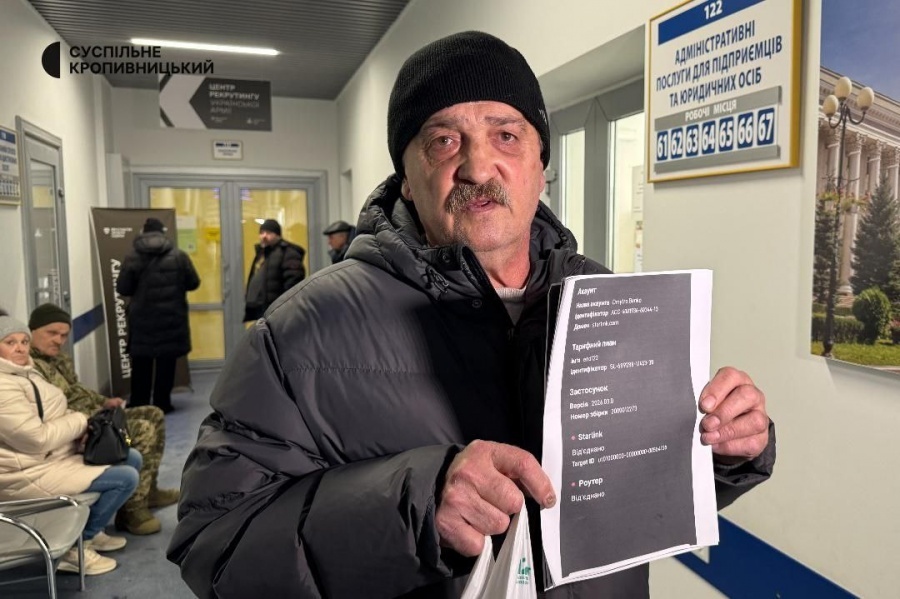 Місцевий житель Сергій Колісник розказав, що прийшов у ЦНАП, щоб зареєструвати термінал Starlink, який разом із знайомими купили для військових. Вони нині перебувають на Херсонському напрямку. Starlink прислали в Кропивницький для реєстрації.